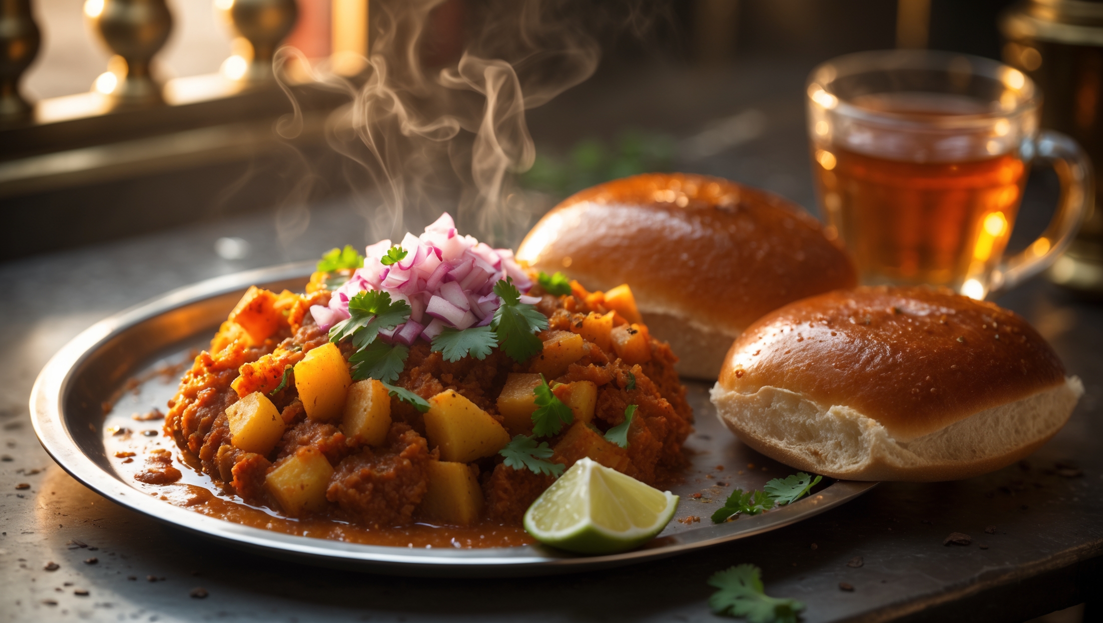 What's the traditional way to serve and eat pav bhaji?